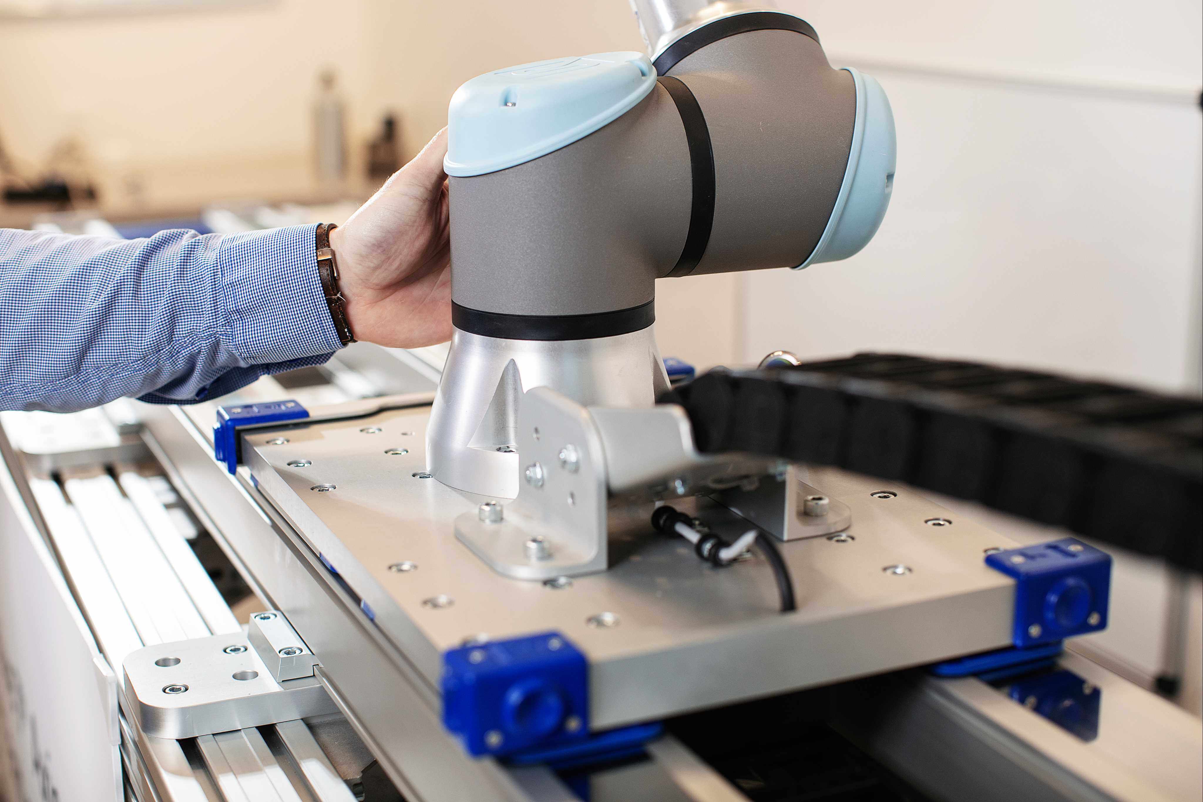 "Thomson Movotrak CTU可無縫擴展UR5機器人的使用范圍,無需額外學習。Freedrive功能可實現更快的編程和工位設置。"