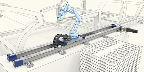 借助Thomson 工業機器人行走單元(RTU),可將機器人應用的工作范圍延伸長達10米,實現24小時不間斷運行和更穩定的工作質量,從而大幅提升生產效率。