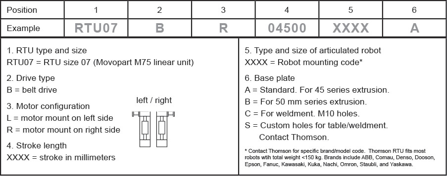 * RTU可提供Kollmorgen伺服電機,請聯系Thomson客服人員了解詳情。