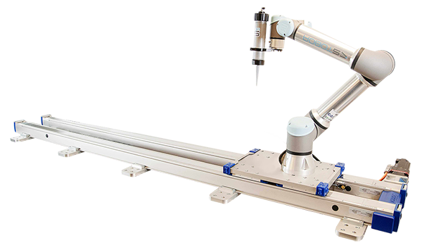 機器人第七軸是指安裝于直線導軌上為機器人提供額外自由度的附加軸。第七軸使機器人能夠沿直線水平或者倒掛移動,從而使機器人工作范圍延伸至標準六軸功能之外。在以下應用中,第七軸可顯著提升機器人的功能和生產效率: